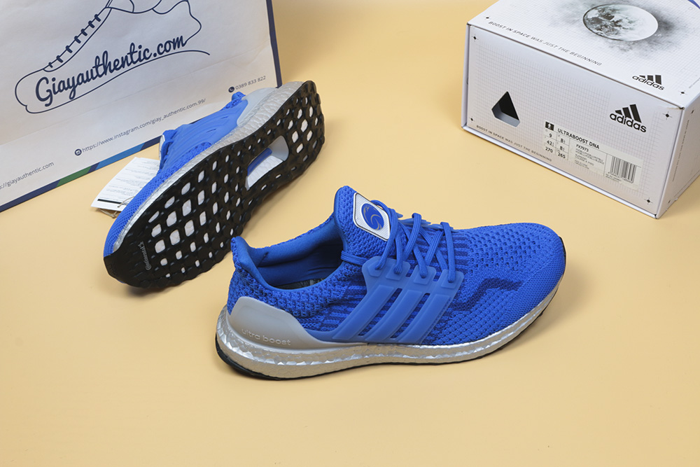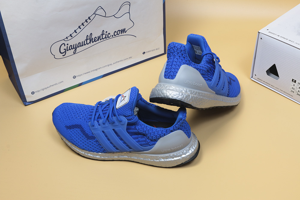 Mẫu giày này có phần upper và dây màu xanh nước biển, đế boost và miếng ổn định gót được sơn màu bạc.