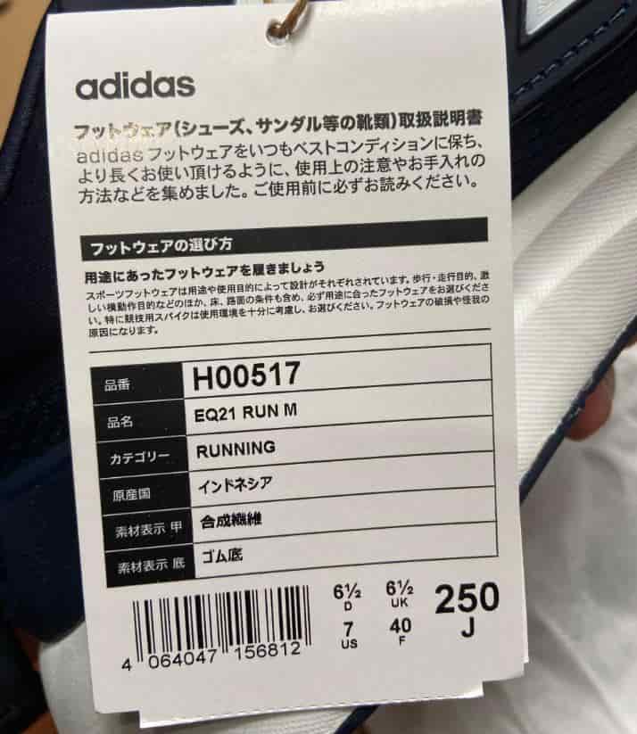 Ảnh tag giày Adidas chính hãng EQ21 Run H00517