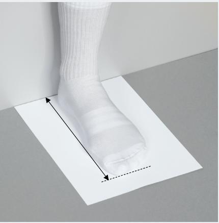 - Bước 3: Làm tương tự với bàn chân còn lại và so sánh số đo với biểu đồ kích cỡ của chúng tôi để chọn đúng kích cỡ.