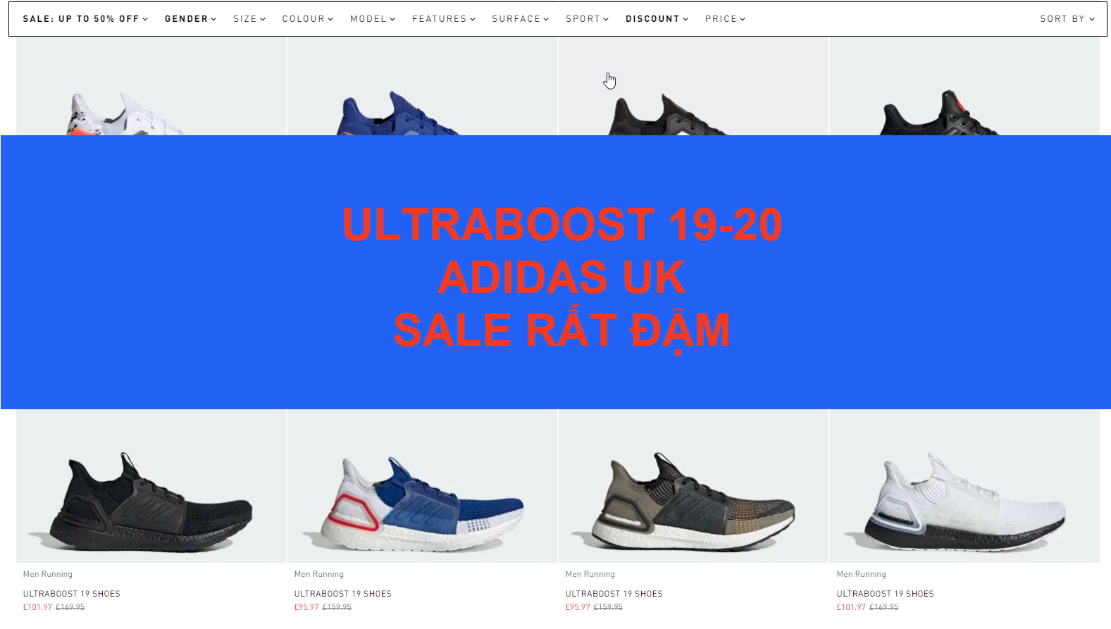 Link tổng hợp các mẫu Ultraboost Sale đậm up to 50% và extra thêm 25%: